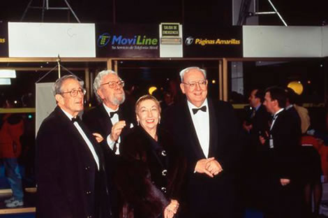 José María Forqué, Luis García Berlanga, Carmen Vázquez-Vigo y José Luis Borau. José María Forqué y Luis García Berlanga. Premios Goya, IX edición.